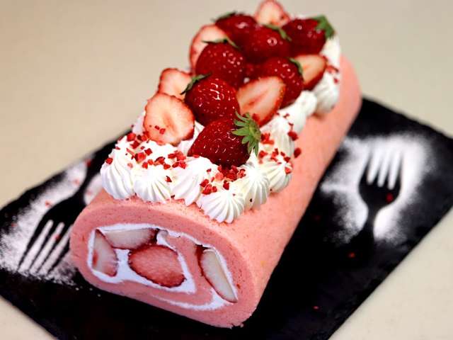 しっとり生地 ピンク色のいちごのロールケーキ キッチンポケット