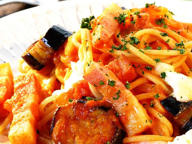 茄子 ベーコンのモッツァレラトマトパスタ レシピ 作り方 By