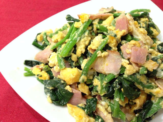 簡単料理 ベーコンとほうれん草の卵炒め レシピ 作り方 By かなこ
