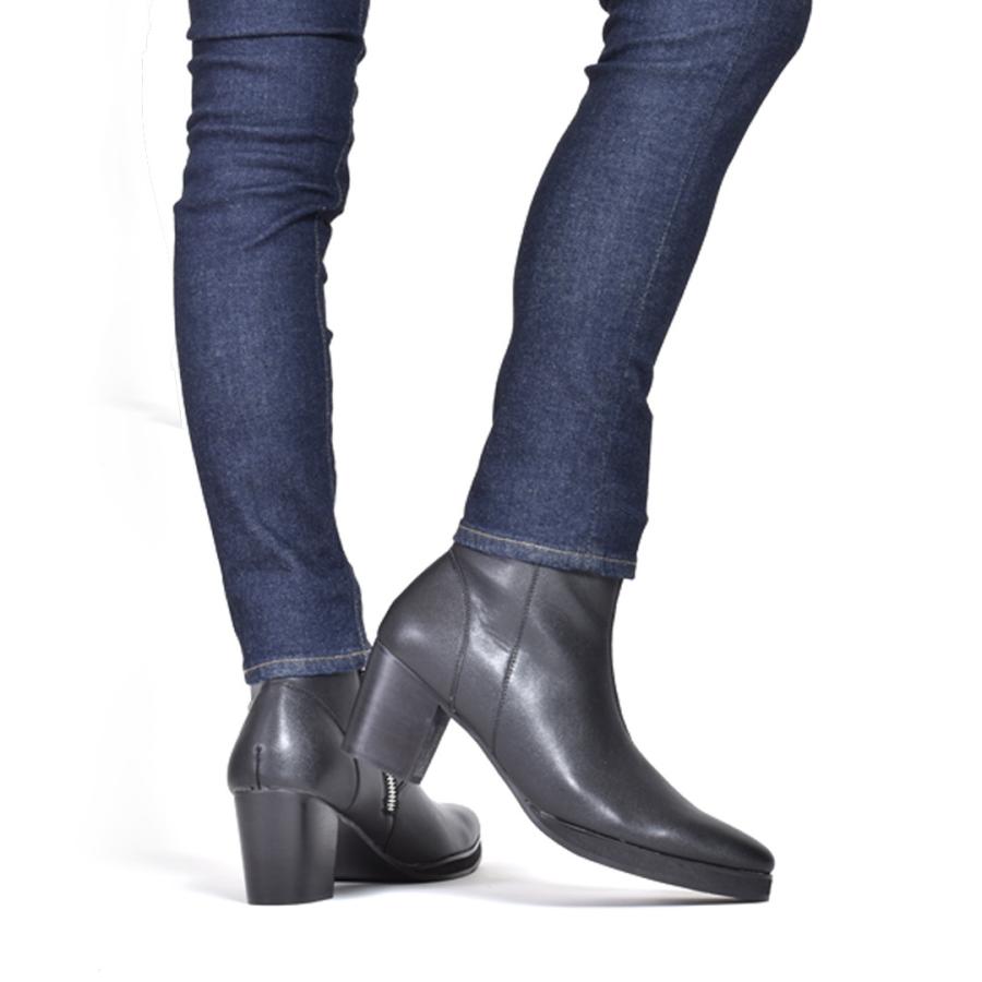 メンズブーツ おすすめ 本革 サイドジップ ハイヒール カジュアル