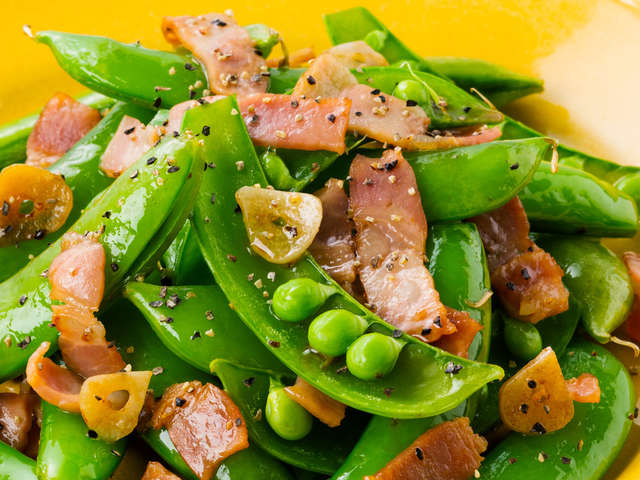 スナップエンドウとベーコンのガリバタ炒め レシピ 作り方 By イオン
