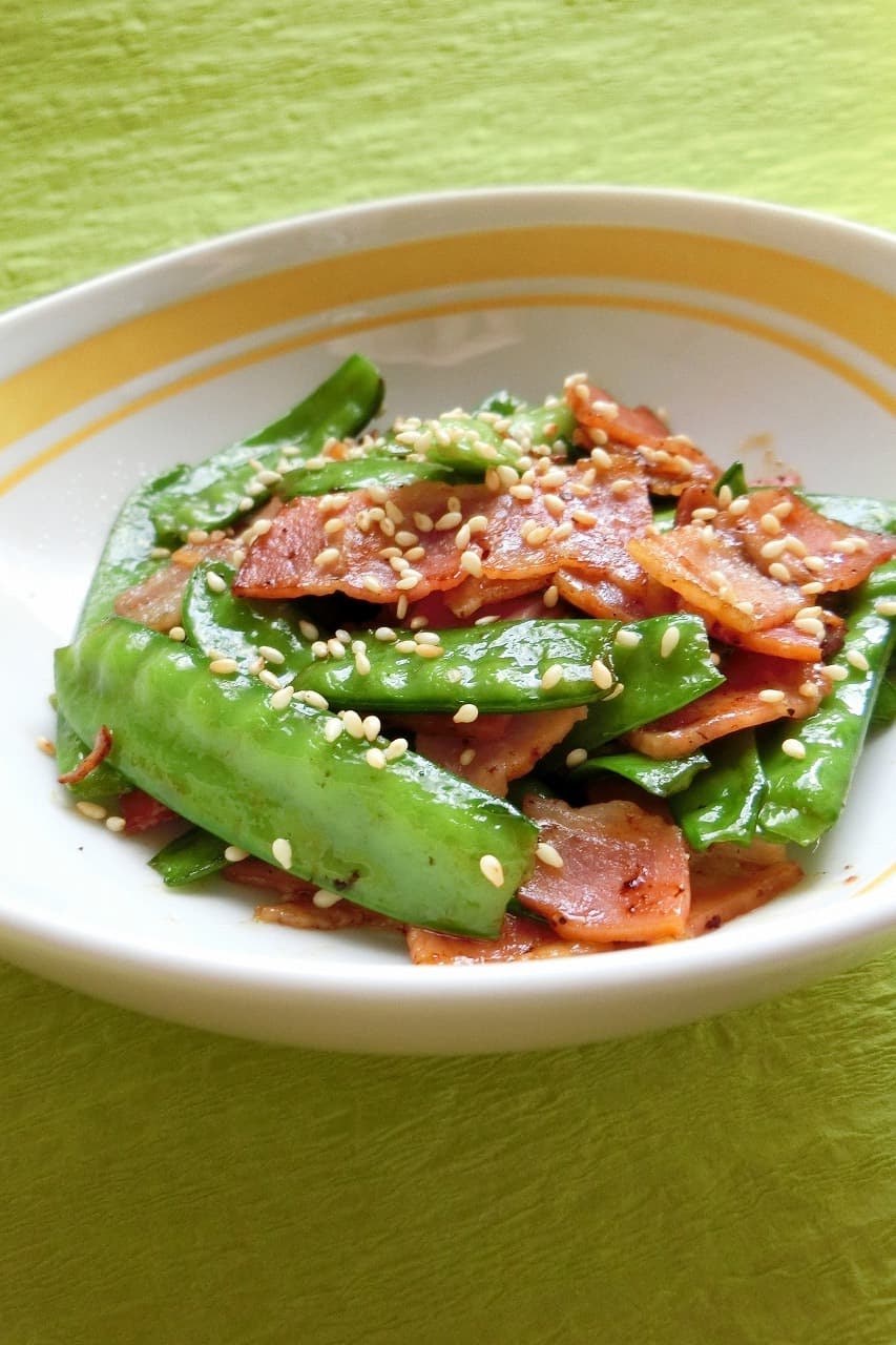 お弁当にも 絹さやとベーコンの醤油ソテー レシピ 作り方 By