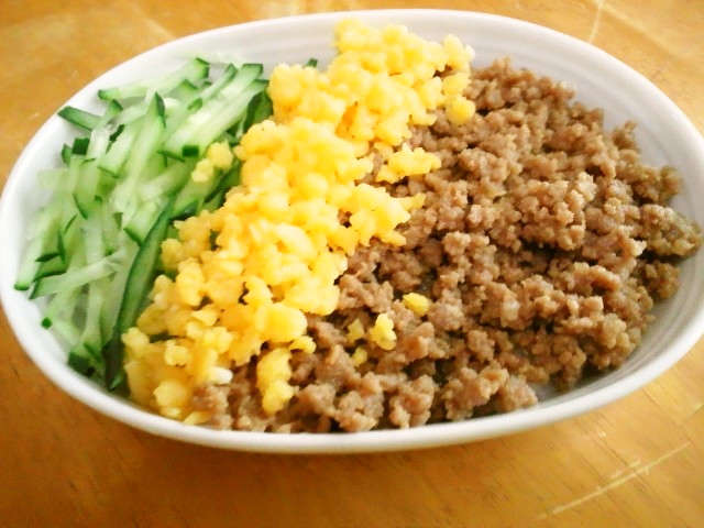 豚ひき肉で 我が家の三色丼 そぼろ弁当 レシピ 作り方 By