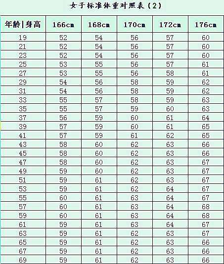 标准体重对照表 Nbsp 你是标准的嘛 文章