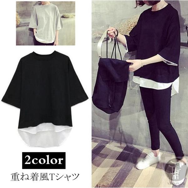 Qoo10 ゆったり 重ね着風 Tシャツ レディ レディース服